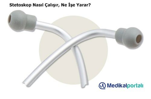 Stetoskop, bir ucunda küçük, yassı bir disk veya oyuk kabı ve diğer ucunda kulaklığı olan uzun, ince bir plastik tüptür. Doktor, düz diski veya oyuk kabı hastanın vücuduna yerleştirir ve kulaklıklar doktorun kulağına girer.